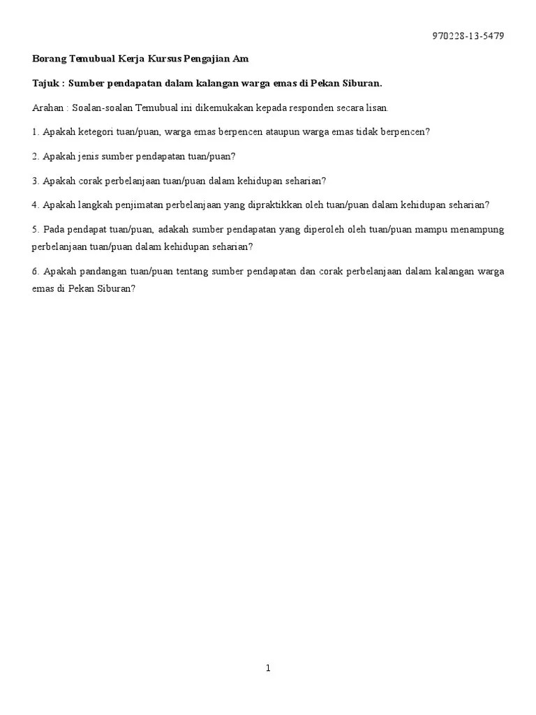 Puan ______ binti ______ no. Contoh soalan soal selidik kerja kursus pengajian am kuora v. Merang, setiu dan kesan ke atas sosiobudaya pelancong serta . Contoh skrip temu bual orang sumber (lampiran) nama : Contoh skrip temu bual kerja kursus sejarah pdf document. Maklumat am jong chao yu. Contoh borang kaji selidik kerja kursus pengajian am cute766 manual kerja kursus pbs, pengajian am p2 2014 via slideshare contoh soalan temu bual pengajian. Contoh kerja kursus pbs stpm pengajian am 4.